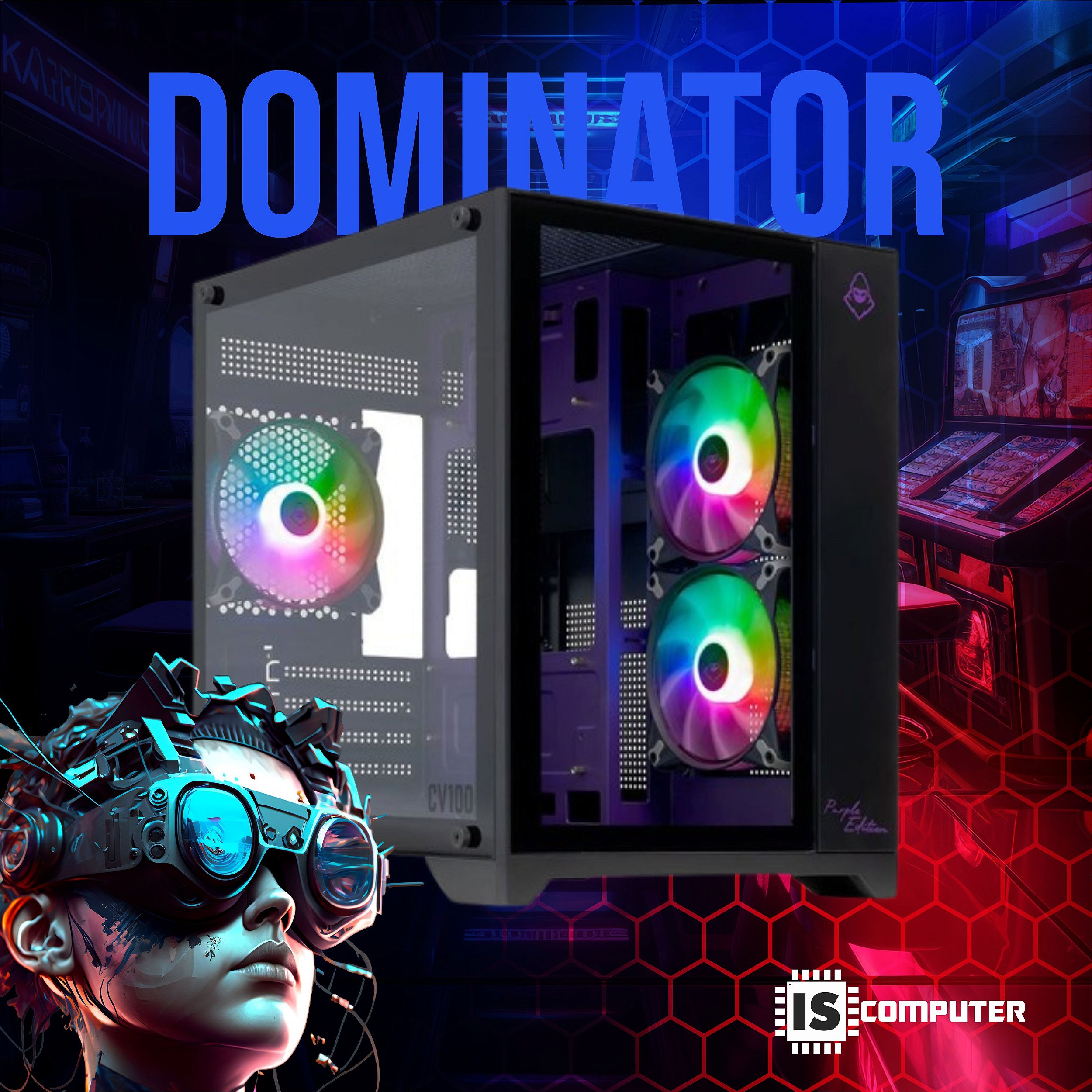 - Gabinete: Gabinete Gamer Dominator com lateral de vidro (3 fans RGB inclusos)